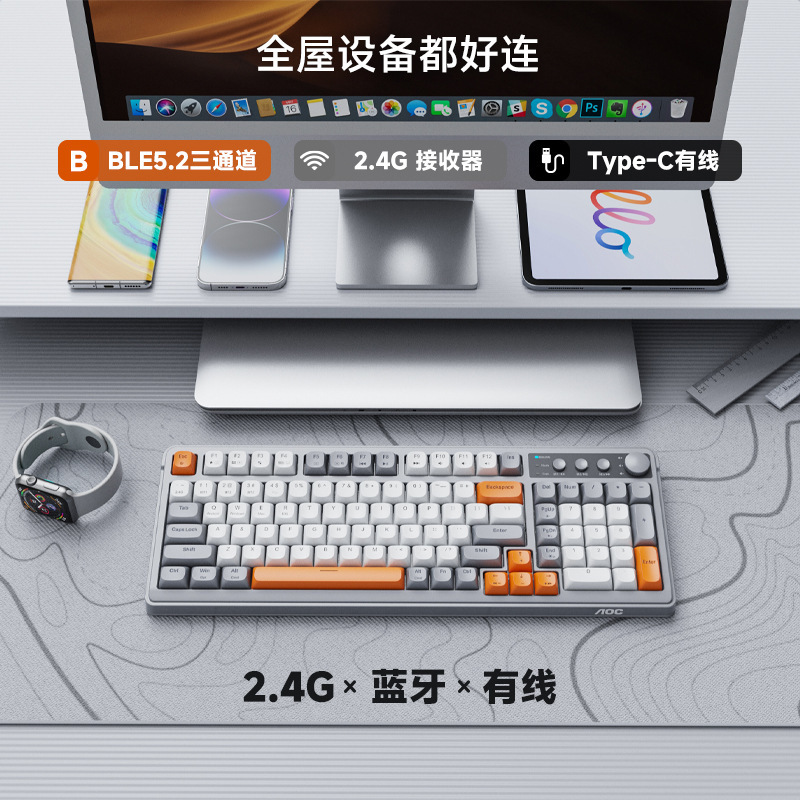 AOC GK210 Bluetooth 무선 3 모드 기계식 키보드 데스크탑 노트북 오피스 게임 새로운 스타일스토어 가기