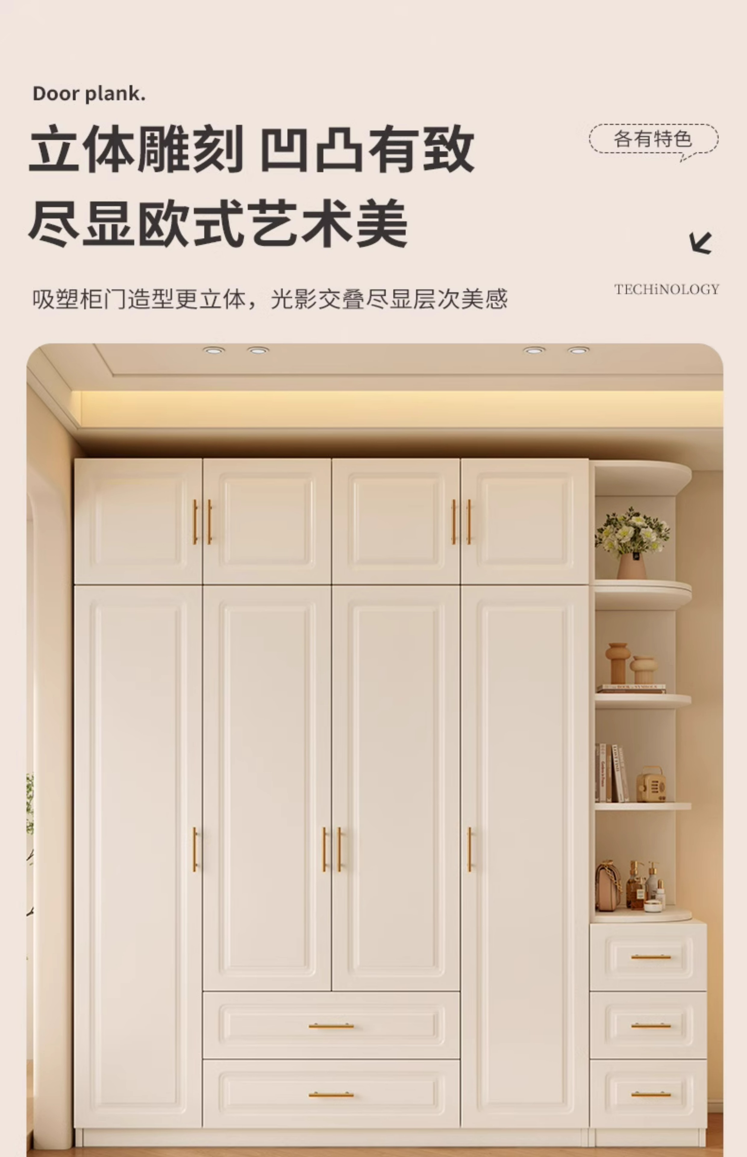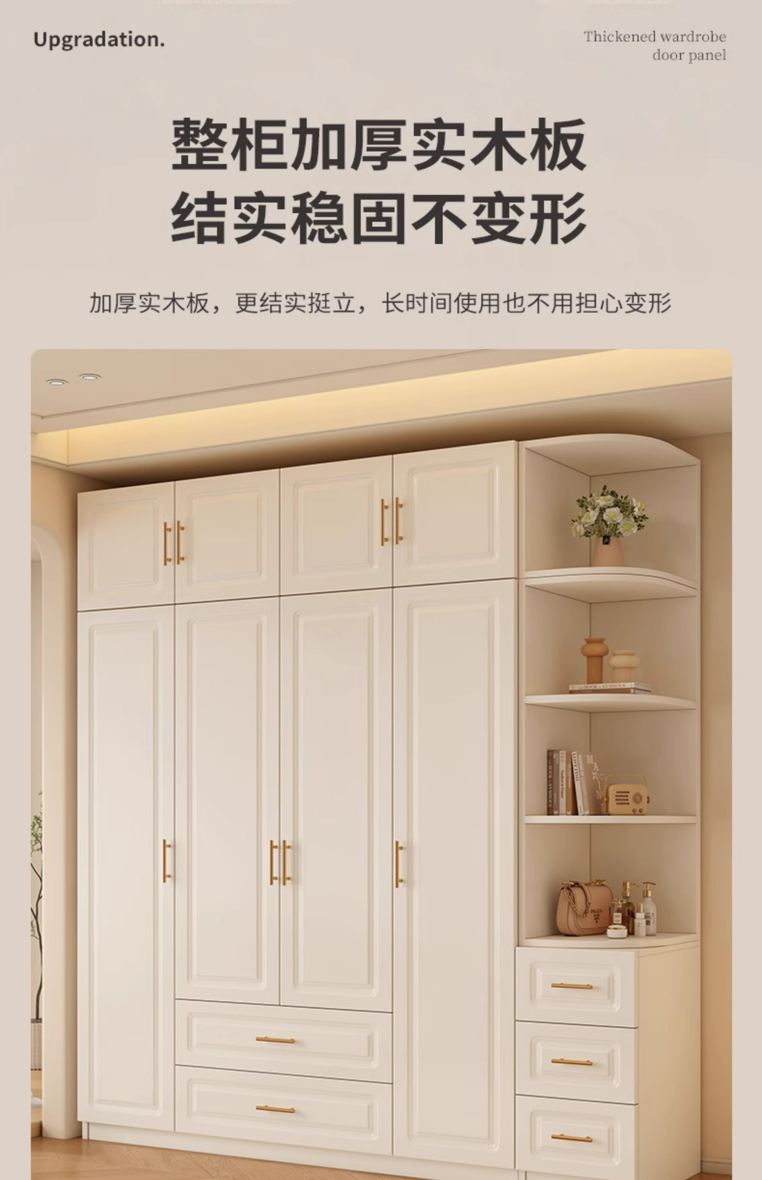 도매 유럽 크림 스타일 단단한 나무 옷장 홈 침실 양문형 나무 보관 캐비닛 라이트 럭셔리 어린이 완제품 대형스토어 가기