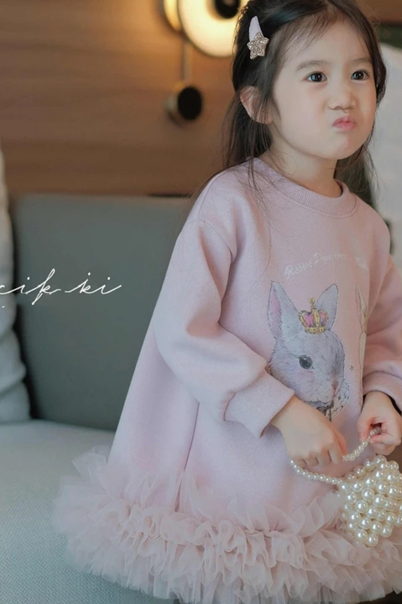 여자 드레스 가을, 겨울 새로운 어린이 만화 긴 인쇄 벨벳 스웨터 아기 메쉬 스플 라이스 스커트 유행스토어 가기