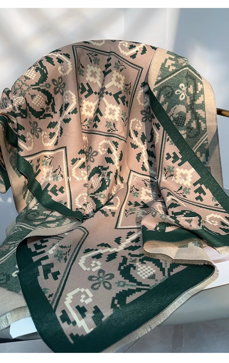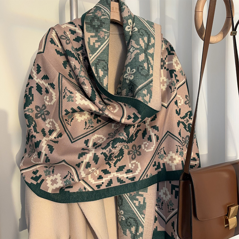중국 빨간 양면 다른 색 캐시미어 스카프 겨울 여성의 다양한 한국 스타일의 다재다능한 국가 스타일 종이 컷 목도리 스카프 이중 사용