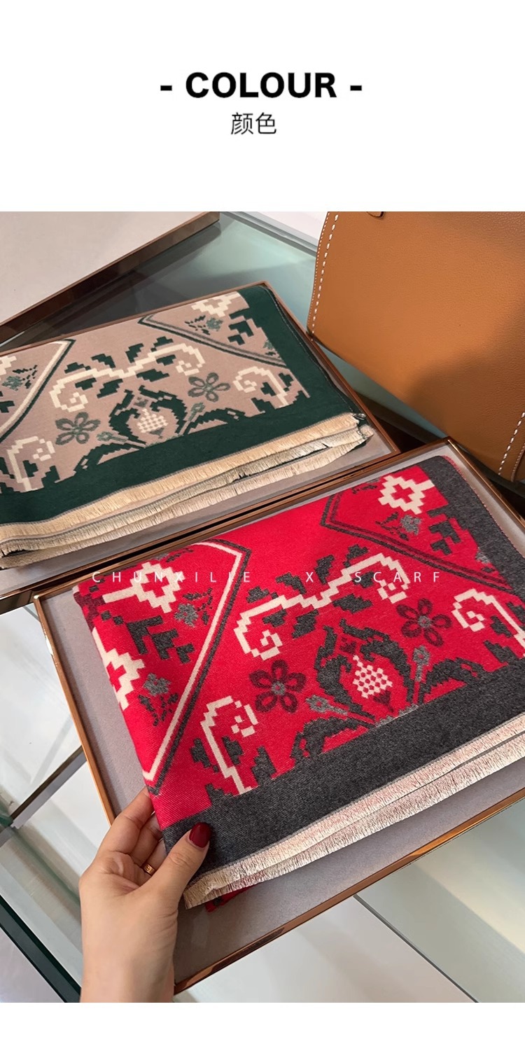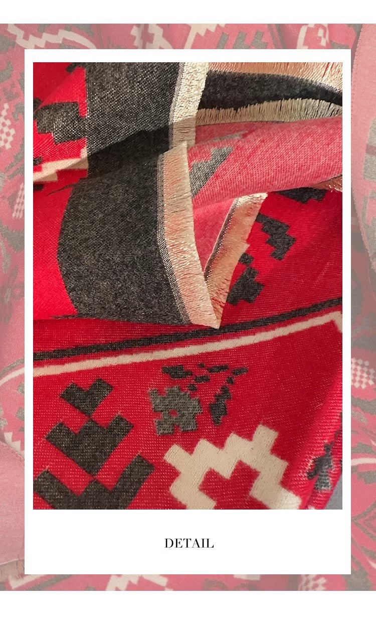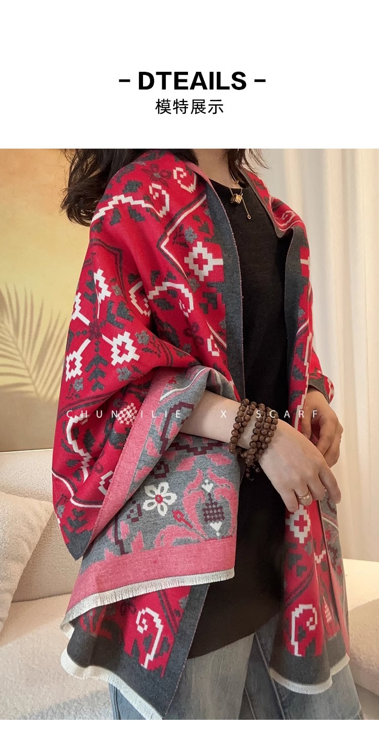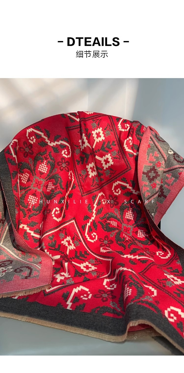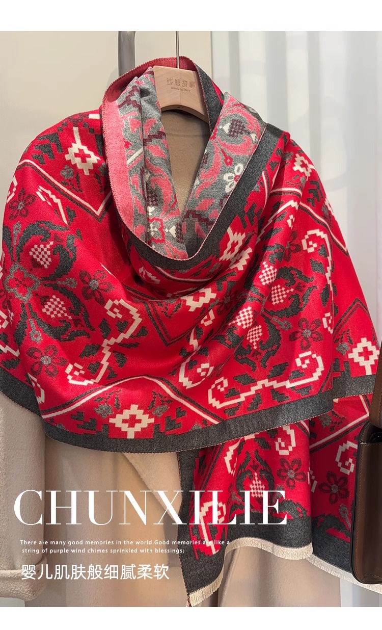 중국 빨간 양면 다른 색 캐시미어 스카프 겨울 여성의 다양한 한국 스타일의 다재다능한 국가 스타일 종이 컷 목도리 스카프 이중 사용스토어 가기