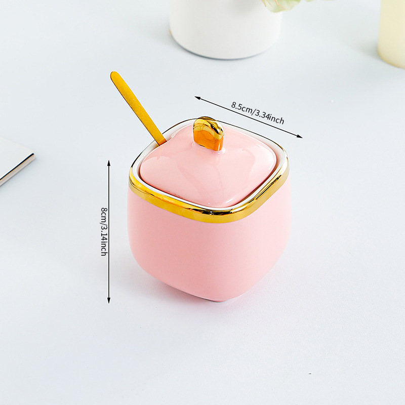 • 핑크색 사각 세라믹 용기 - 스푼 포함