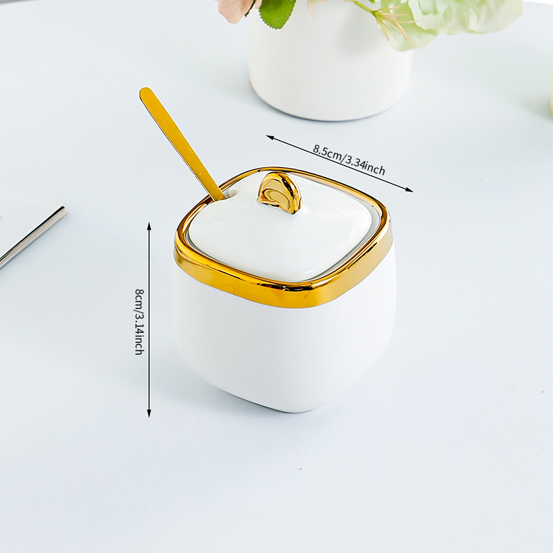 • 흰색 사각형 세라믹 용기 - 스푼 포함