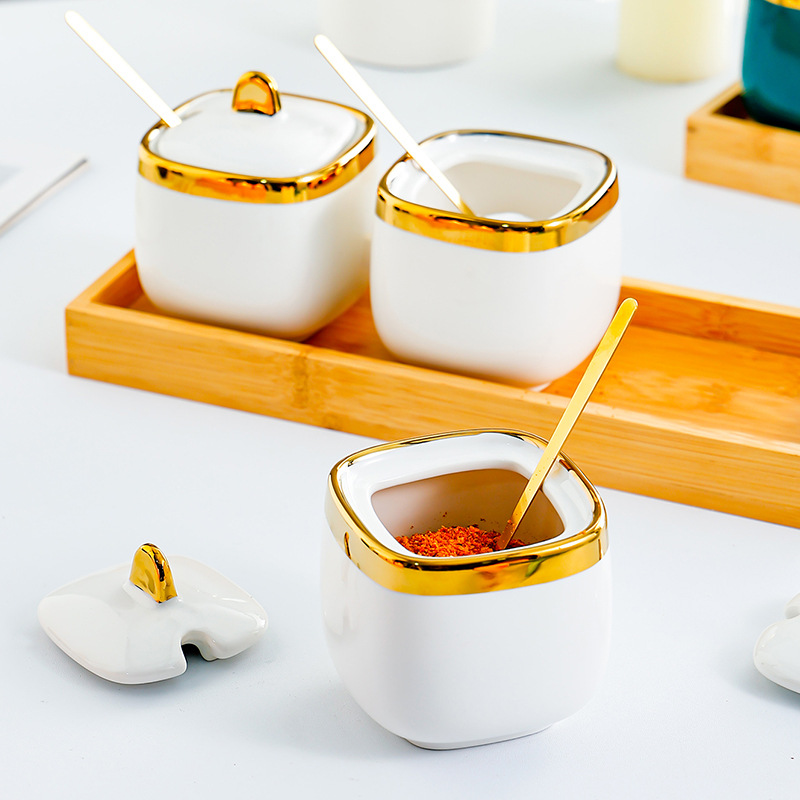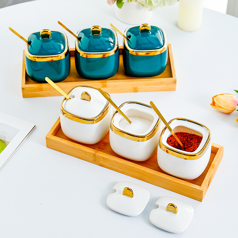 북유럽 소금 MSG 조미료 항아리 양념 상자 세라믹 고급 주방 용품 가정용 칠리 오일 항아리 조합 세트