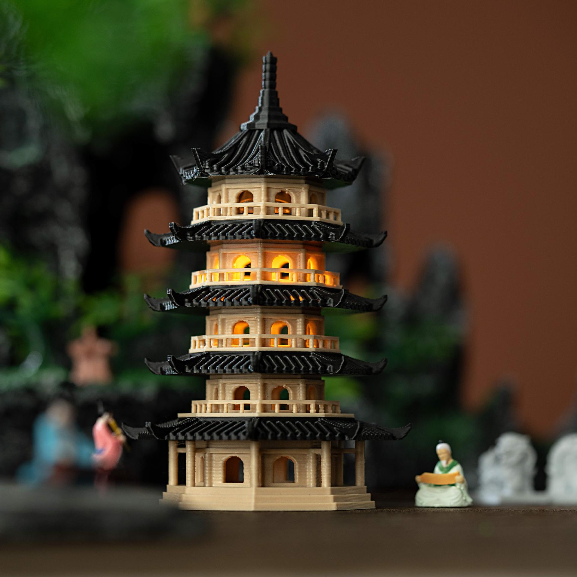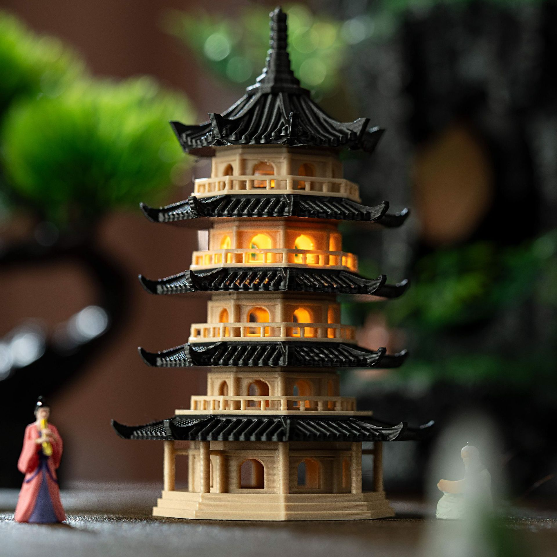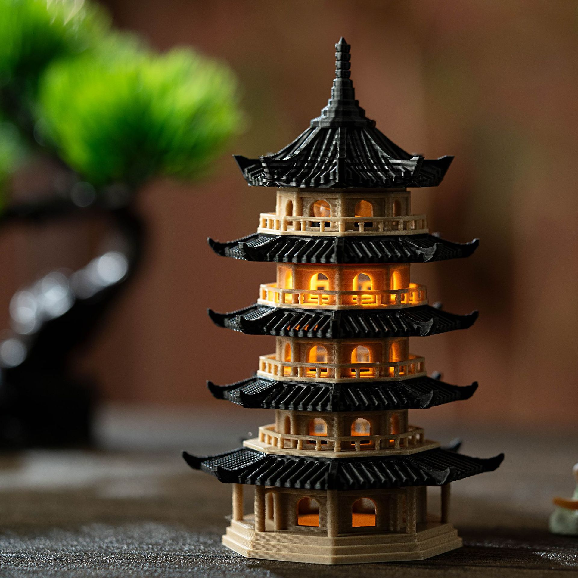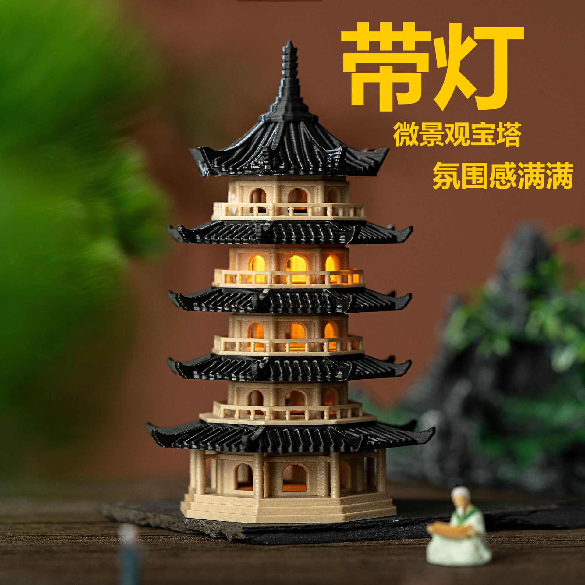 조명으로 분재 흡수석 녹색 용 돌 장식 조경탑 파빌리온 마이크로 경관 모델 5 층 탑 탑 바위스토어 가기