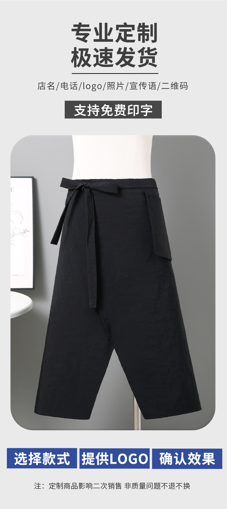 국경 간 인기 반 길이 앞치마 방수 슬릿 홈 주방 패션 앞치마 케이터링 커피 숍 작업복 인쇄스토어 가기