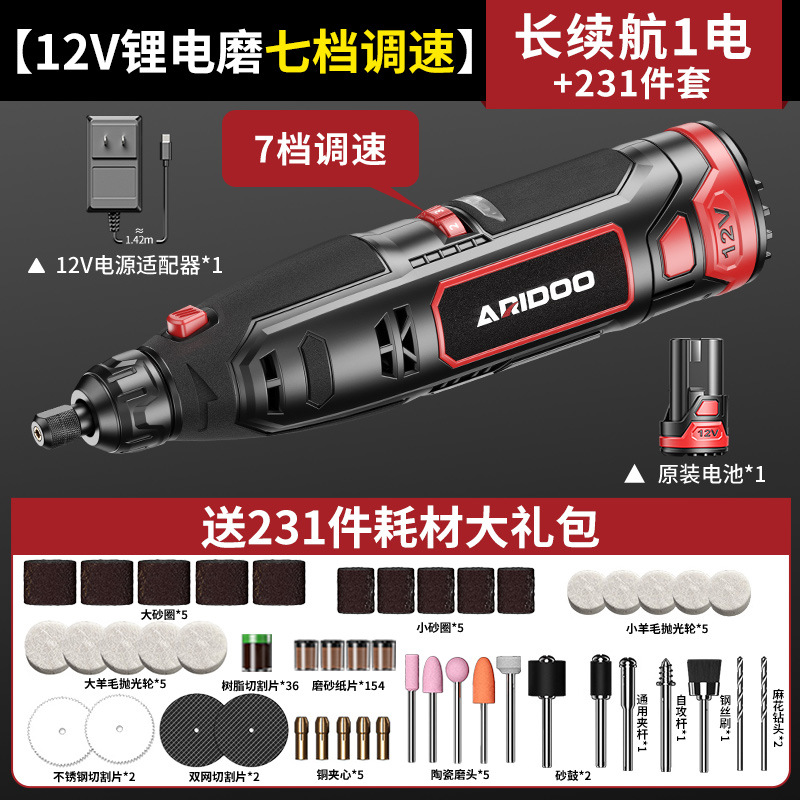 • [7단계 속도 조절이 가능한 12V 리튬 전기 그라인더] 긴 배터리 수명 1개 배터리 + 231개 세트