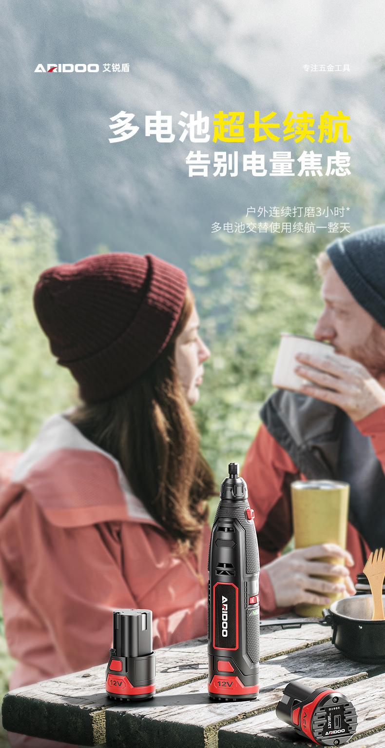 • [7단 속도 조절이 가능한 12V 리튬 전기 그라인더] 긴 배터리 수명, 배터리 2개 + 558개 세트
