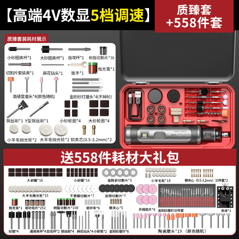 • [고급형 4V 디지털 디스플레이 5단 속도 조절] 전동 그라인더(고품질 세트)