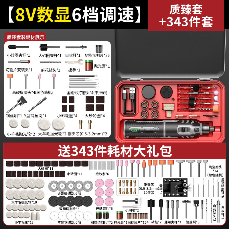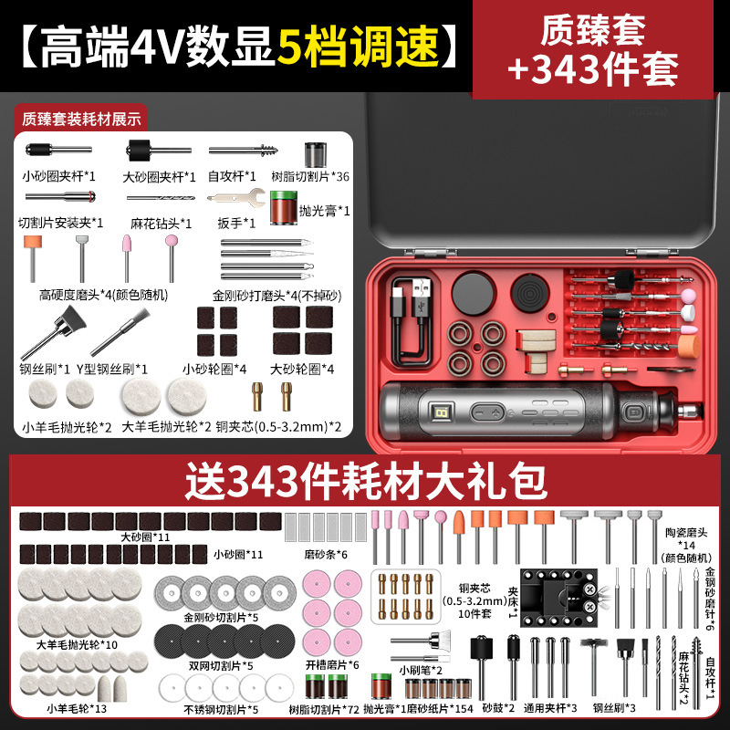 • [고급 8V 디지털 디스플레이 5단 속도 조절](고품질 세트) + 343개 세트