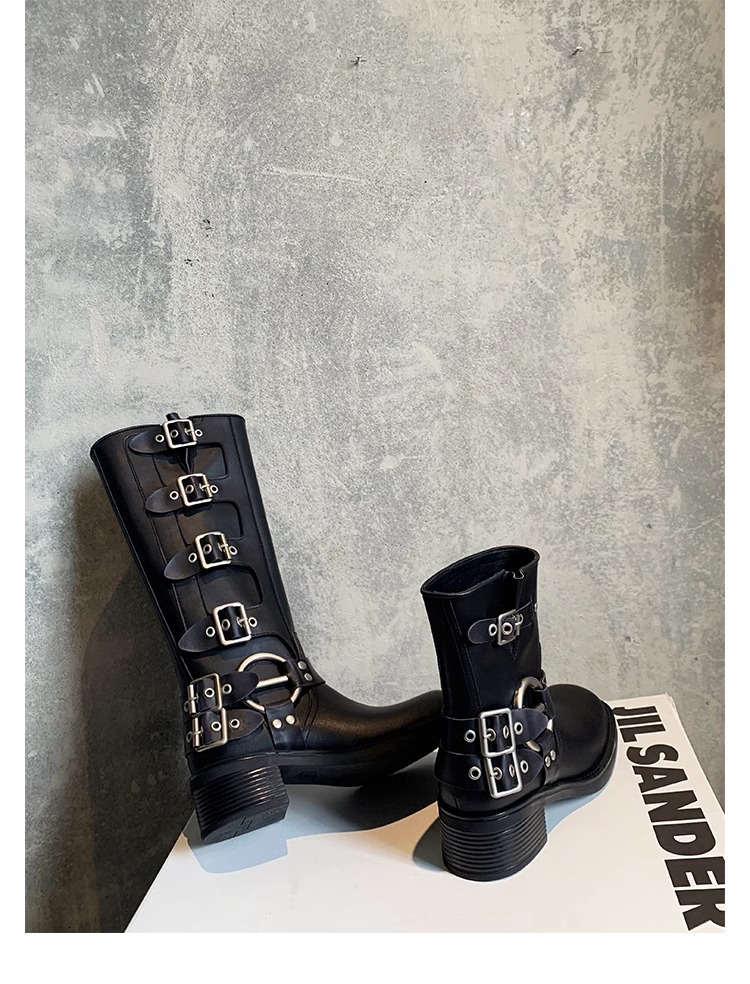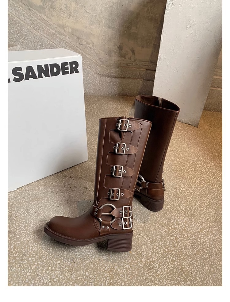 2025 새로운 두꺼운 굽 하이 라이더 부츠 여성 정품 가죽 레트로 브라운 오토바이 부츠 롱 부츠 웨스턴 카우보이 부츠 싱글