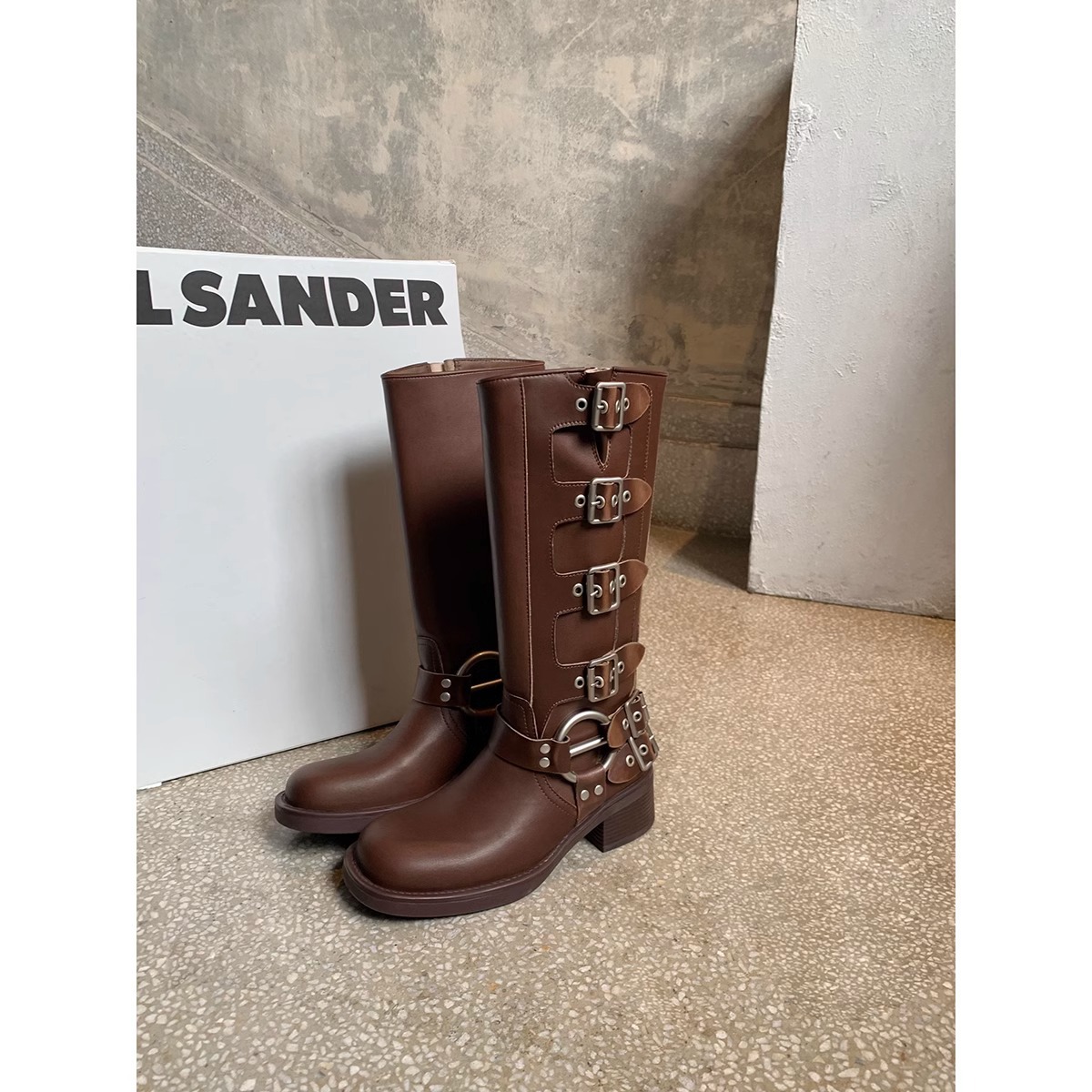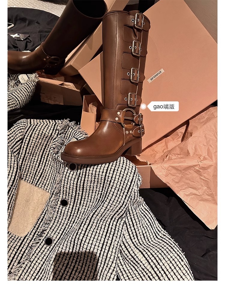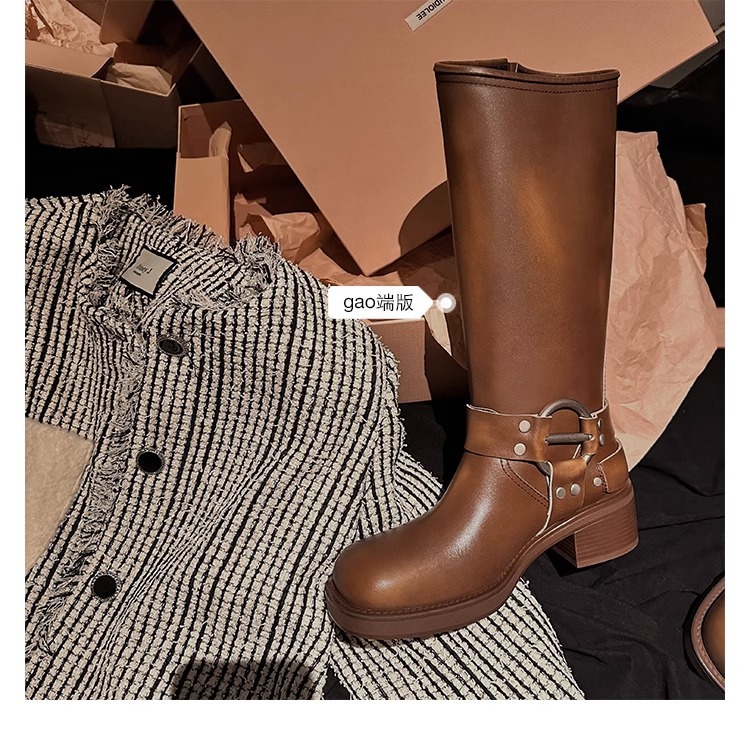 2025 새로운 두꺼운 굽 하이 라이더 부츠 여성 정품 가죽 레트로 브라운 오토바이 부츠 롱 부츠 웨스턴 카우보이 부츠 싱글스토어 가기
