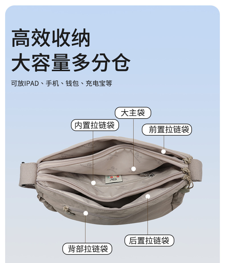 새로운 캐주얼 하이 엔드 텍스처 여성 크로스 바디 백 여성용 가방 방수 크로스 바디 백 경량 싱글 숄더 멀티 레이어 Satchel