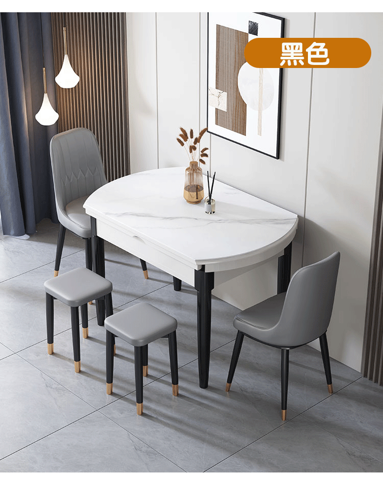 소스 암판 식탁 작은 아파트 가정용 개폐식 접히는 단단한 나무 현대 간단한 둥근 테이블 식탁 및 의자 세트