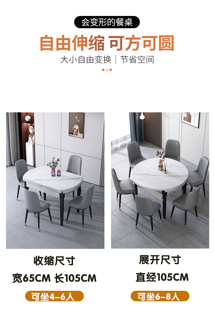 소스 암판 식탁 작은 아파트 가정용 개폐식 접히는 단단한 나무 현대 간단한 둥근 테이블 식탁 및 의자 세트스토어 가기