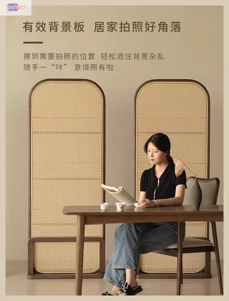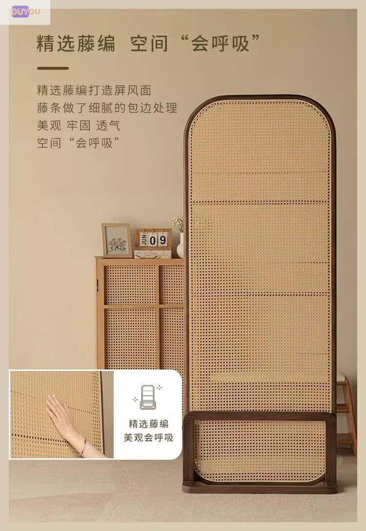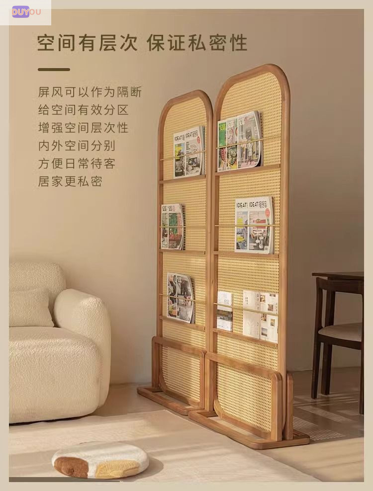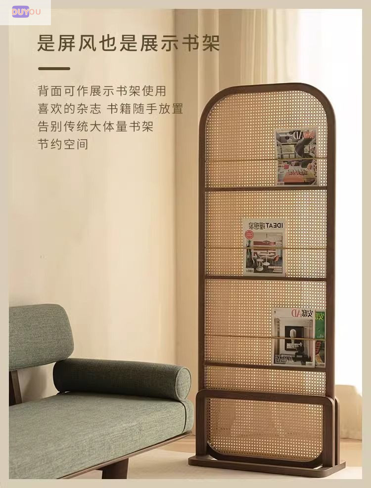 새로운 중국 스타일의 와비사비 원목 등나무 이동식 좌석 스크린, 복고풍 입구, 칸막이, 거실 책장스토어 가기