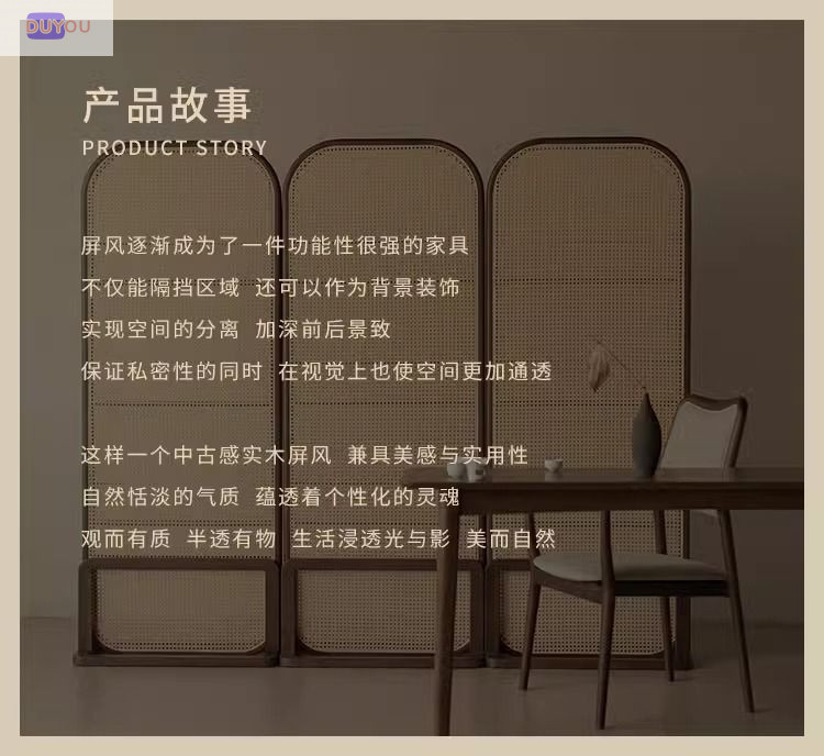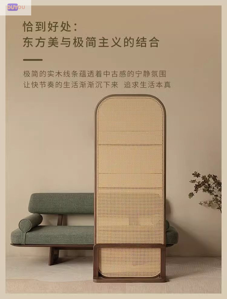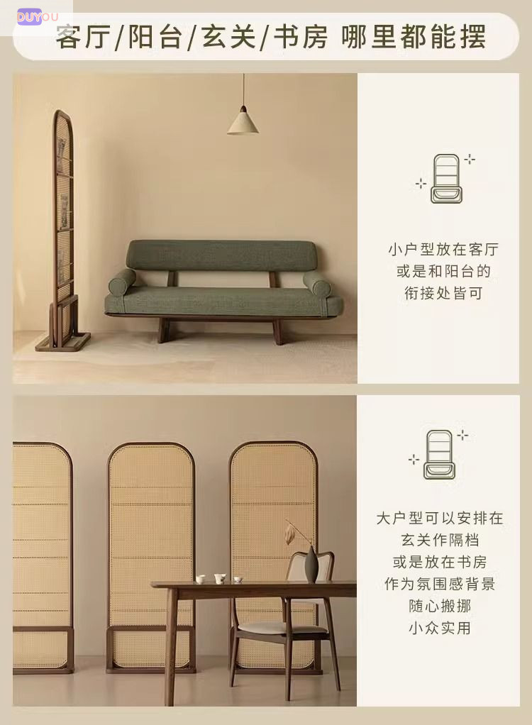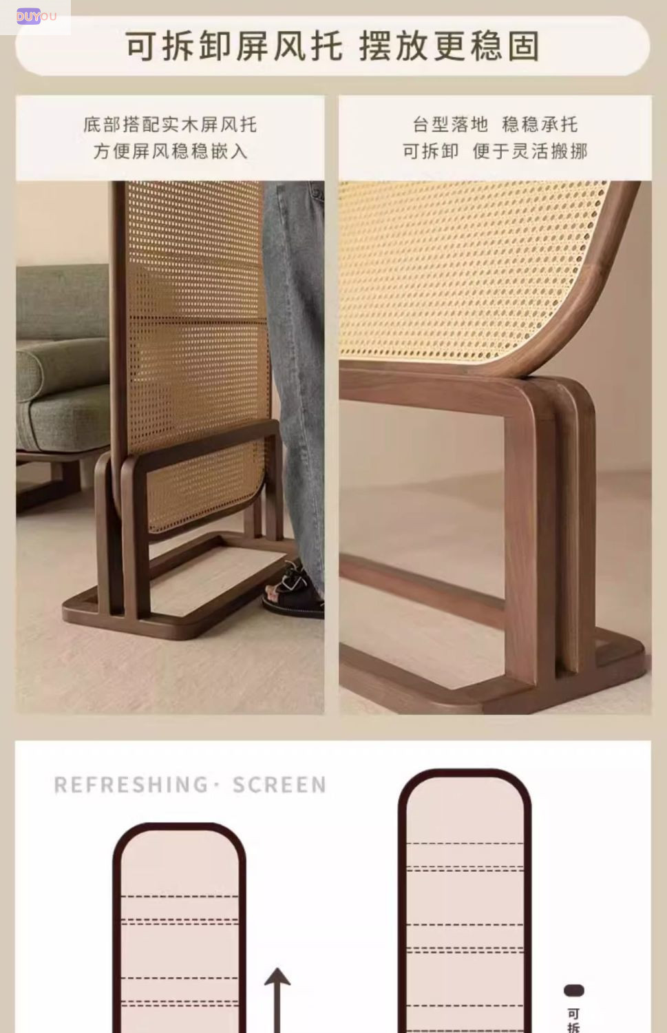 새로운 중국 스타일의 와비사비 원목 등나무 이동식 좌석 스크린, 복고풍 입구, 칸막이, 거실 책장스토어 가기