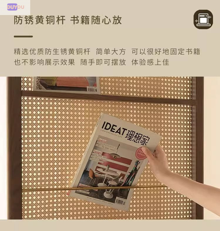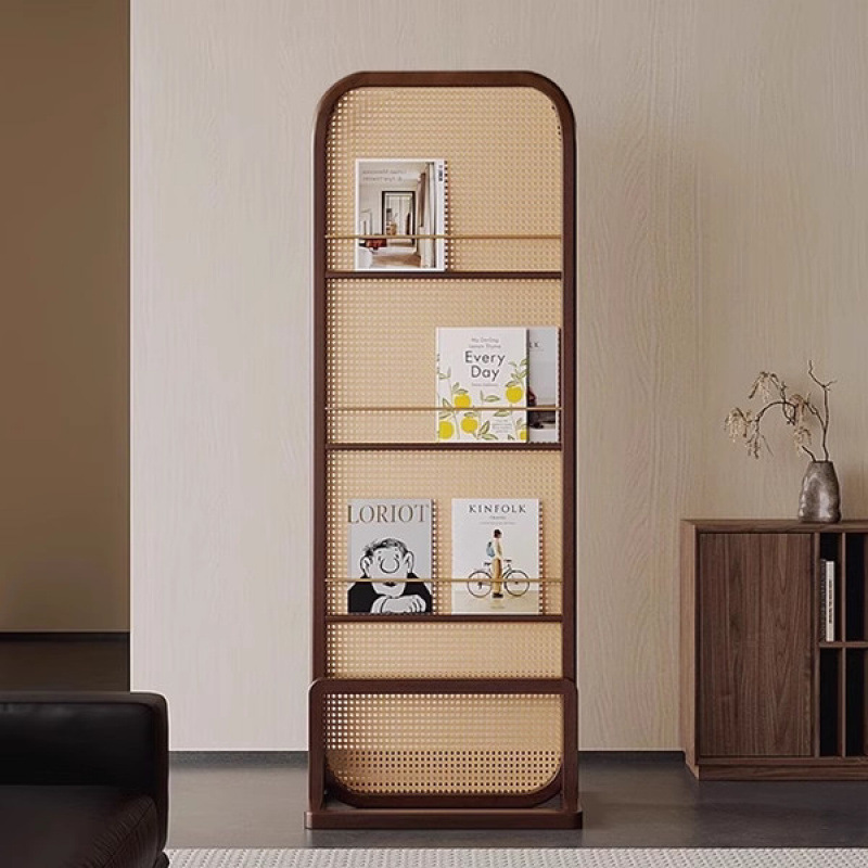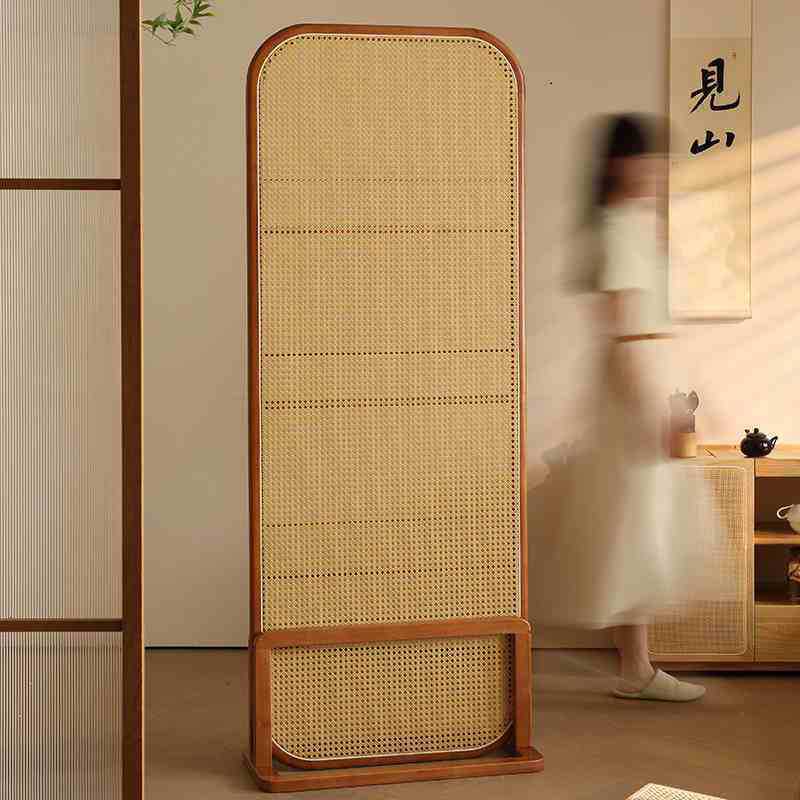 새로운 중국 스타일의 와비사비 원목 등나무 이동식 좌석 스크린, 복고풍 입구, 칸막이, 거실 책장
