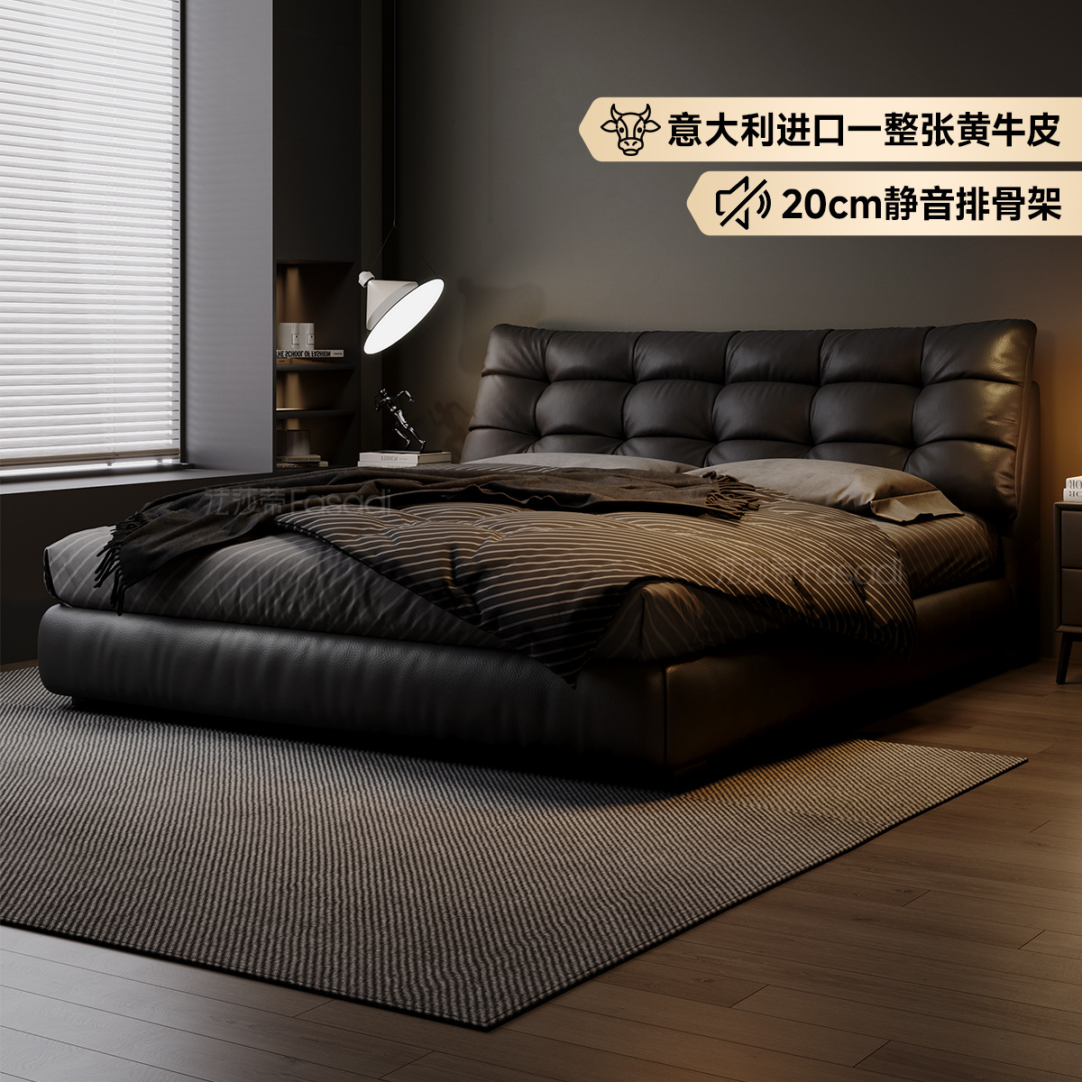 소스풀 버클 침대 마스터 침실 블랙 침대 수납 하이박스 웨딩 침대 더블 침대 1.8m 소프트스토어 가기