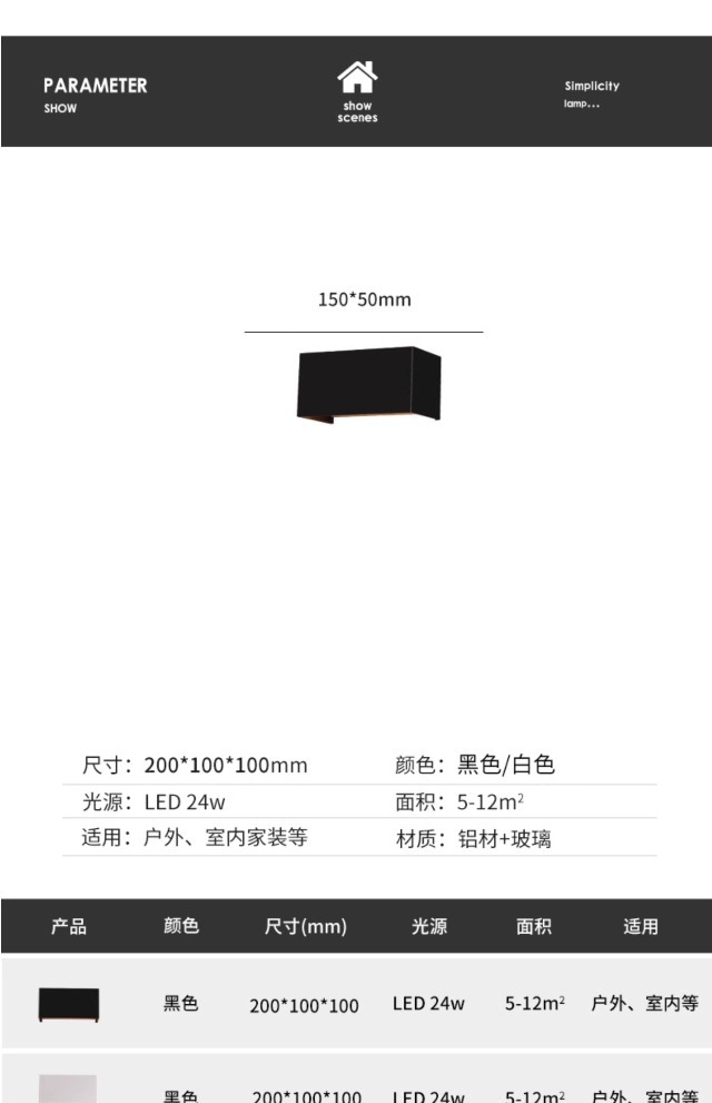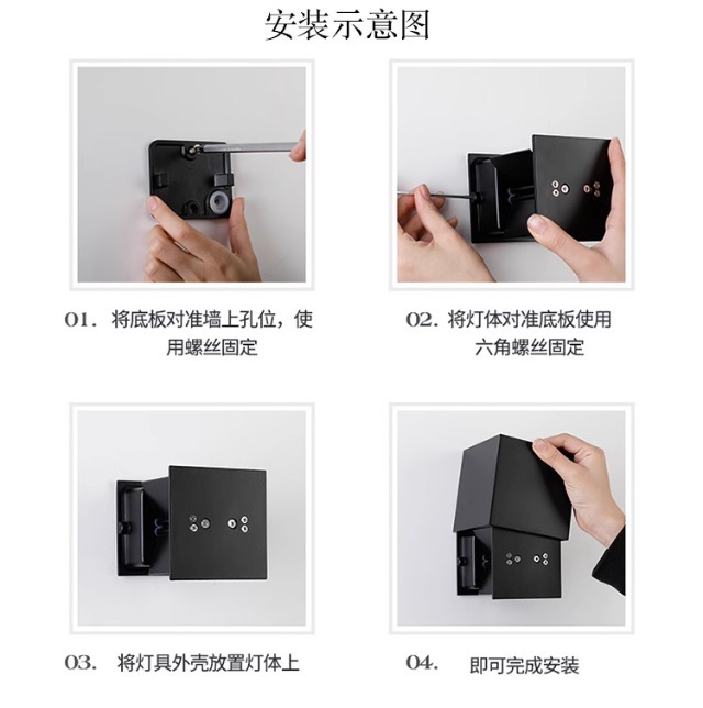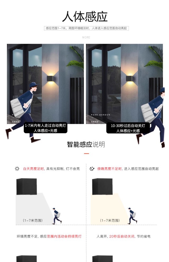 • 사각-검정색-따뜻한 빛-12w-인체 센서 모델 전기 연결-백색광 비고