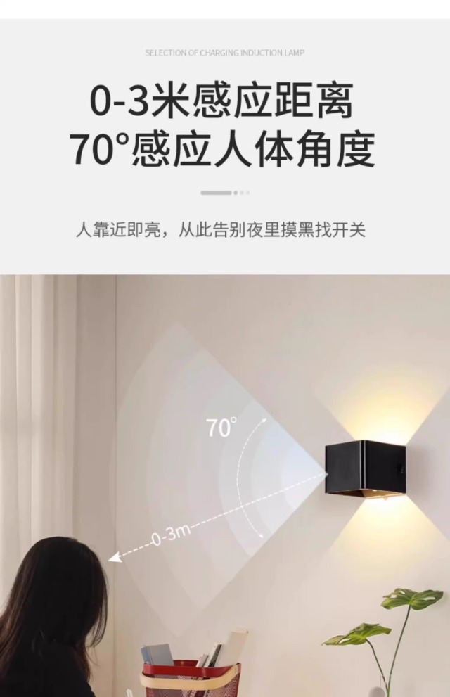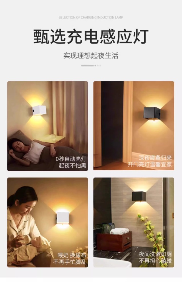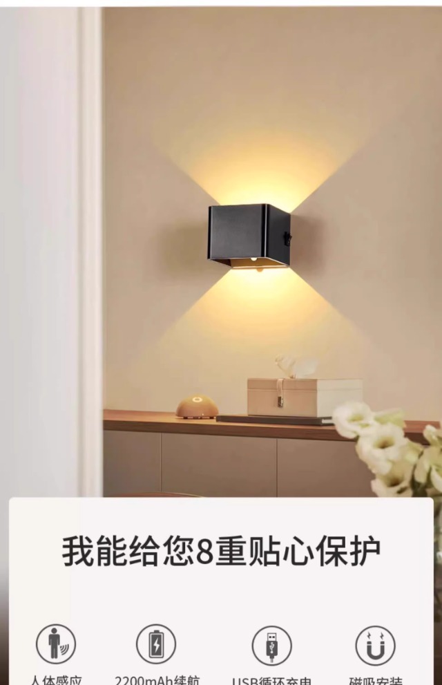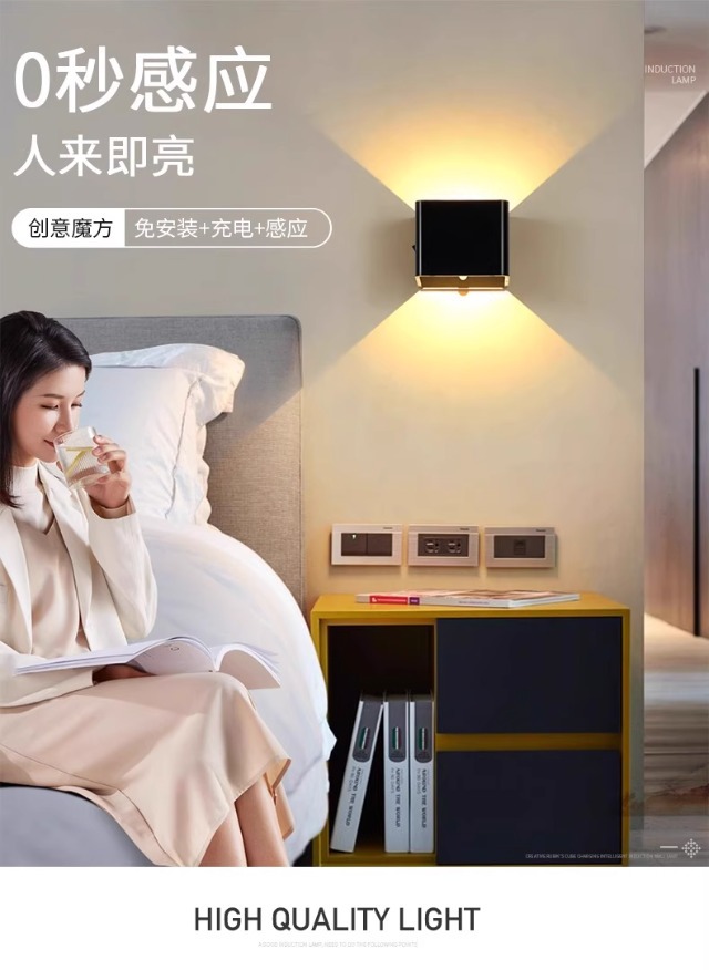 국경 간 usb 충전식 벽 램프 호텔 침실 침대 옆 램프 무선 배선 자유로운 자기 유도 긴 내구성 벽 램프스토어 가기