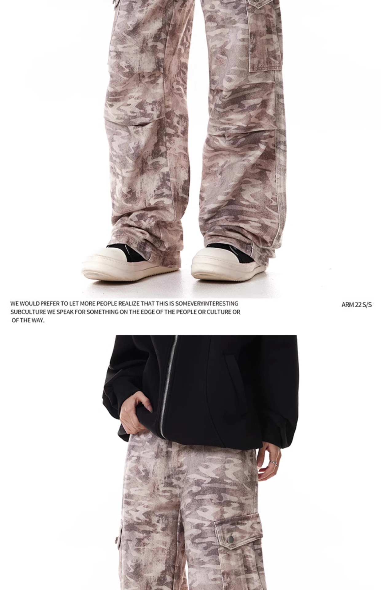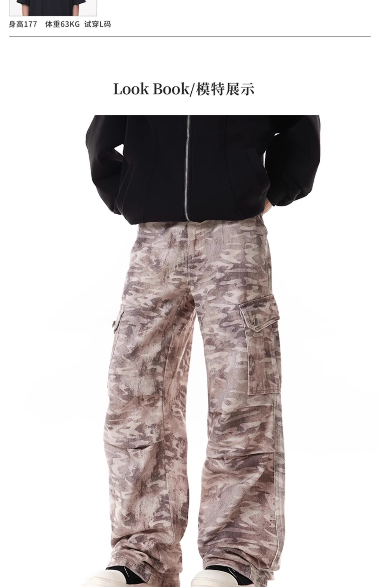 2024 새로운 레트로 은퇴 한 위장 잡힌 바지 남성용 루즈 스트레이트 아메리칸 멀티 포켓 와이드 레그 캐주얼 바지스토어 가기
