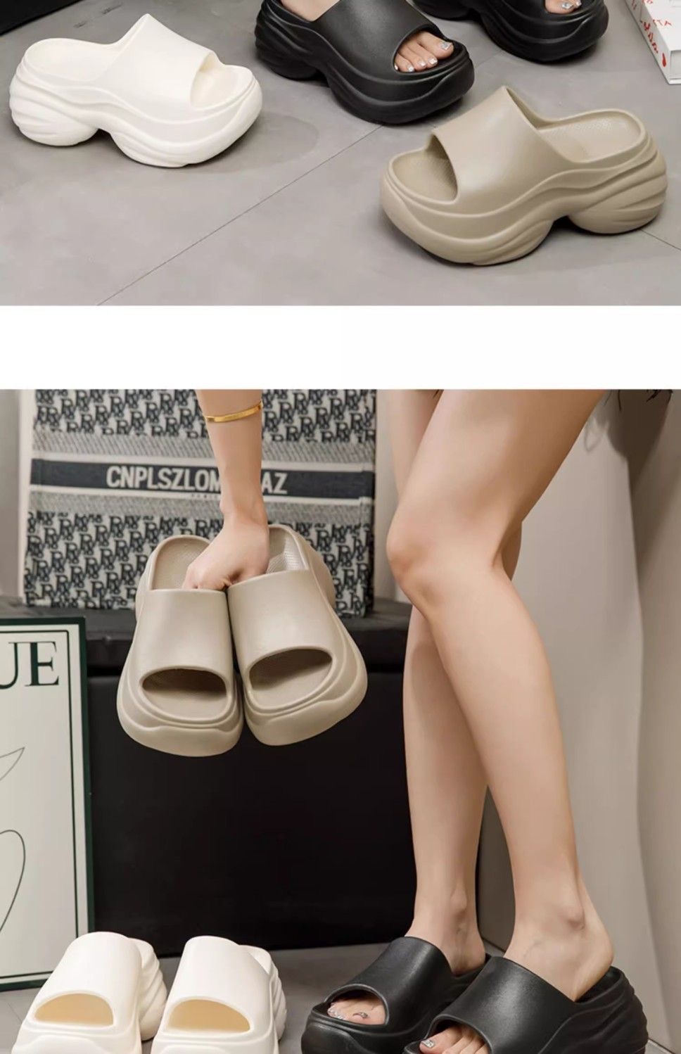 여성 8cm 두꺼운 슬리퍼 외부 착용 패션 트렌디 한 슬라이드 소프트 단독 셔츠 슬리퍼 실내 홈 슬리퍼스토어 가기