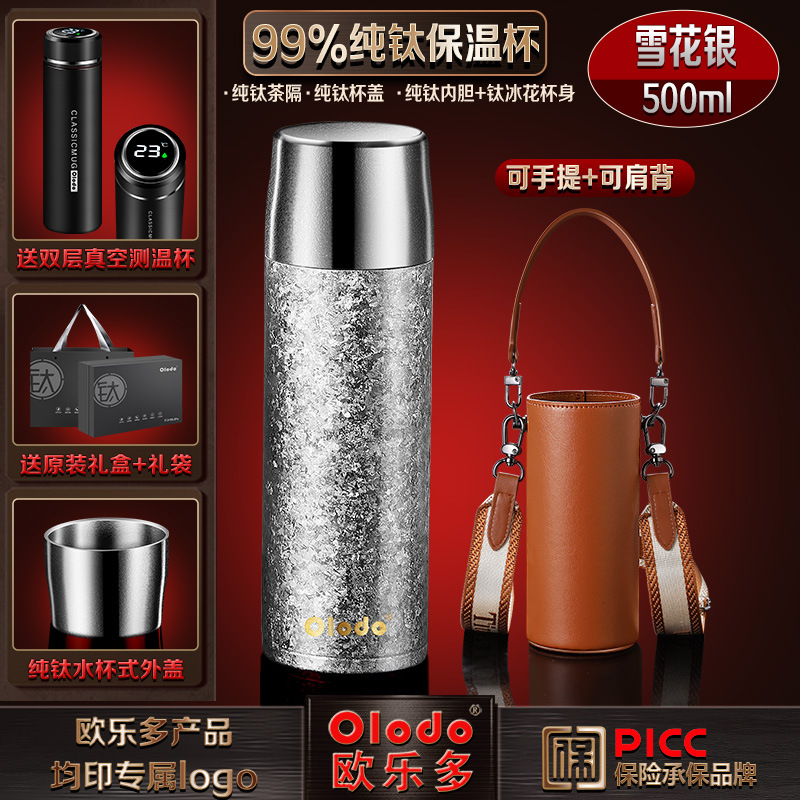 Ouleduo 순수 티타늄 보온병 휴대용 자동차 워터 컵 티 컵 남성과 여성 친구를위한 고급 선물 제공