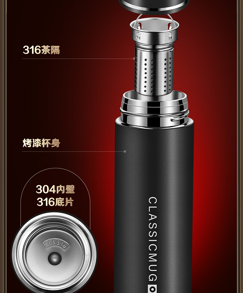 • 내외 순수 티타늄 + 순수 티타늄 차 칸막이 + 겸용 컵 커버 + 고급 선물 상자 [눈송이 실버/500ml] + 316 이중 진공 온도 측정 컵