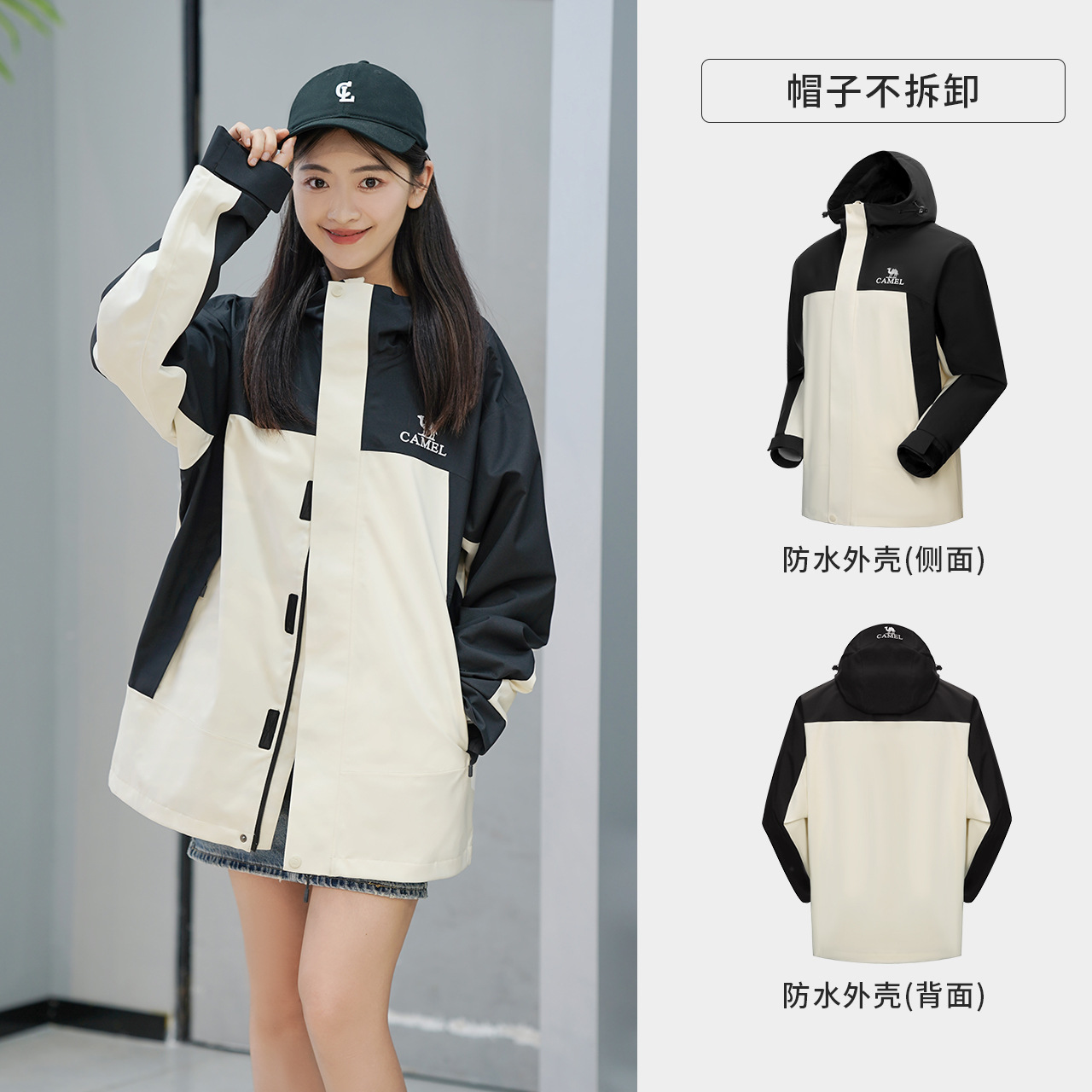 카멜(CAMEL) 하드쉘 싱글 레이어 자켓 남성용 배색 방풍 방수 재킷 등산복 여성용 유니섹스 코트스토어 가기
