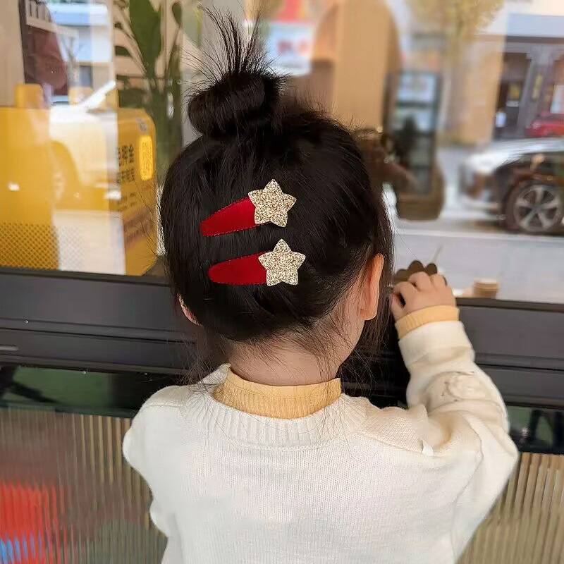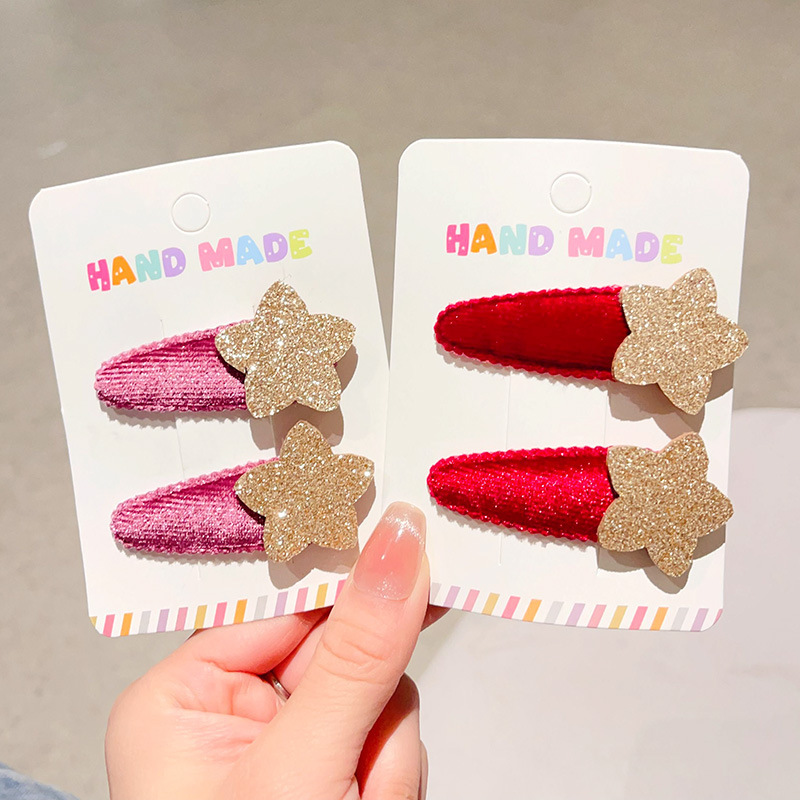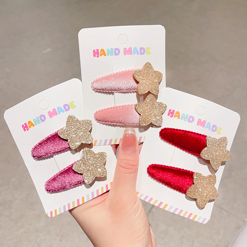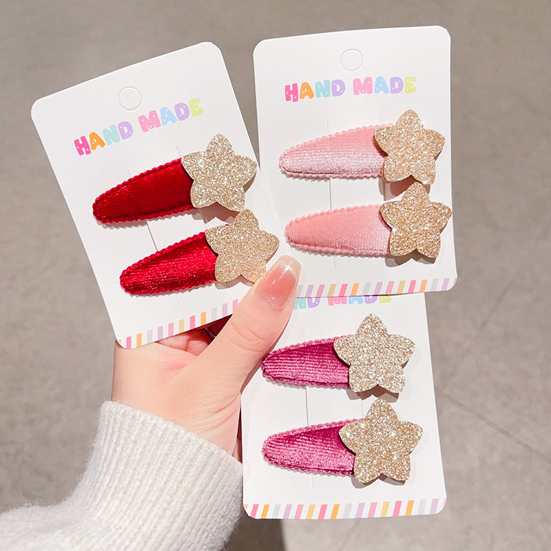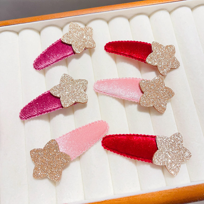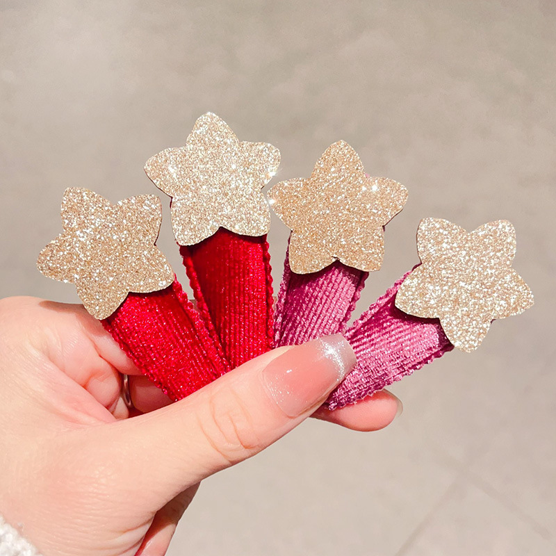 가을과 겨울 새로운 어린이 봉제 패브릭 BB 클립 반짝이 5 앵글 스타 헤어 클립 소녀 앞머리 깨진 헤어 클립 헤어 클립 헤어 클립