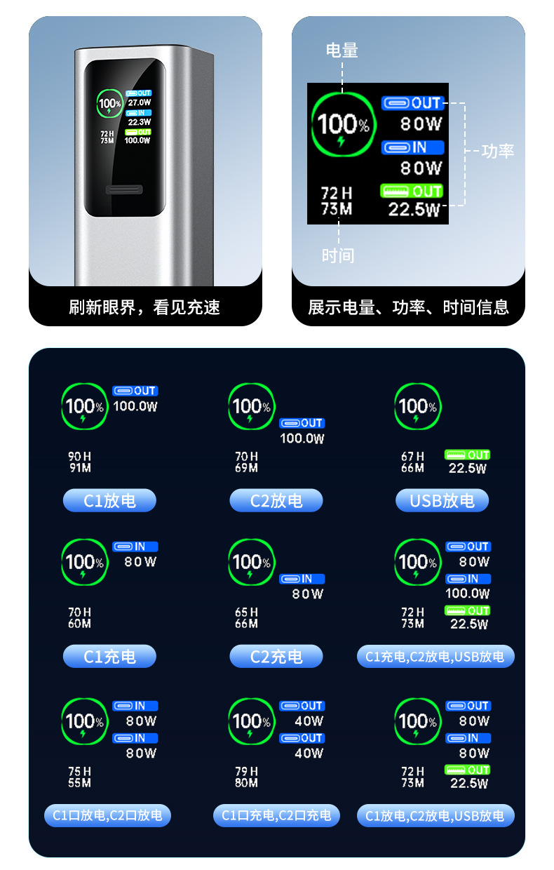 附加功能:TFT 功率数显、多口输出
