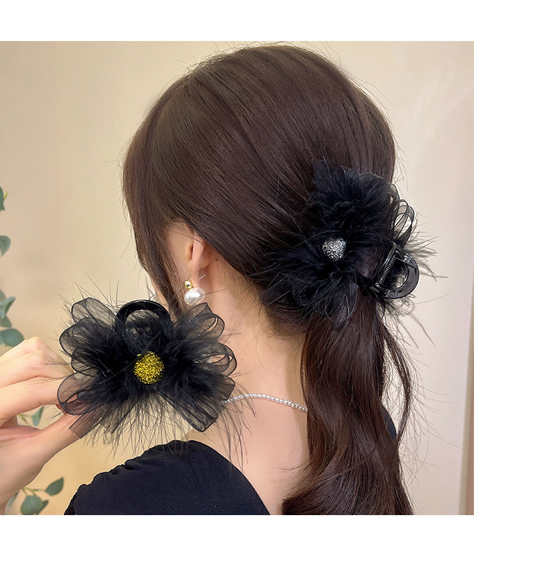 气质感羽毛黑色蝴蝶结抓夹女泡泡云朵发夹后脑勺大号鲨鱼夹