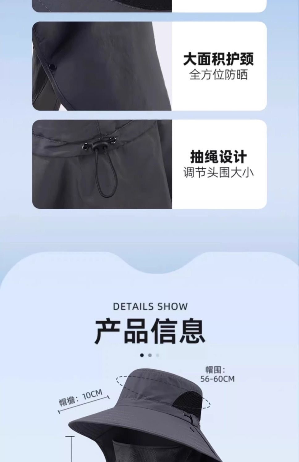 어부 모자 여름 자외선 차단 모자 남성용 야외 등산 모자 낚시 얼굴 가리개 목 보호 올인원 모자 큰 챙 태양 모자