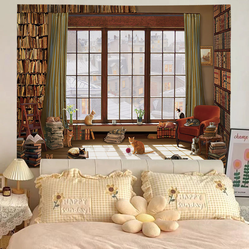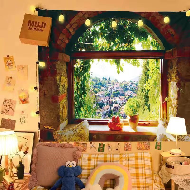 Ins 아름다운 창 풍경 온라인 유명 라이브 배경 천 침실 장식 태피스트 기숙사 개조스토어 가기