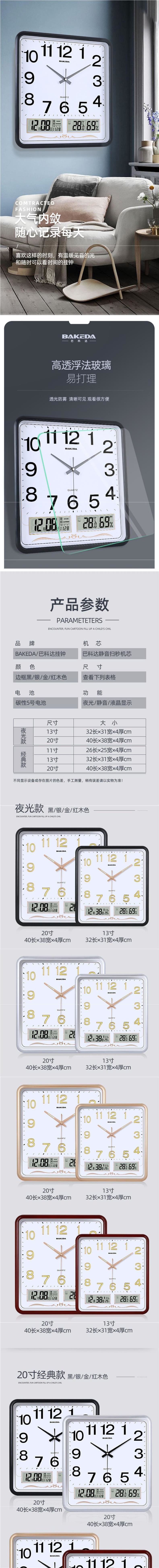 가정용 사각형 벽시계 거실 시계 침묵 벽걸이 패션 전자 달력 시계 석영 시계