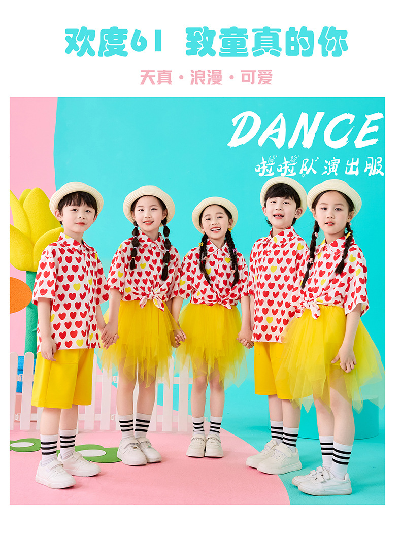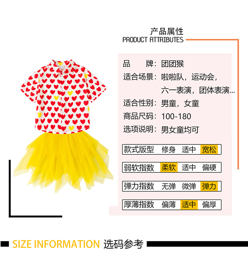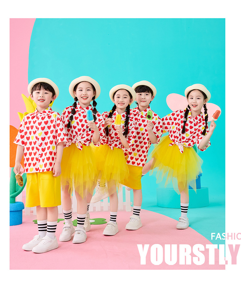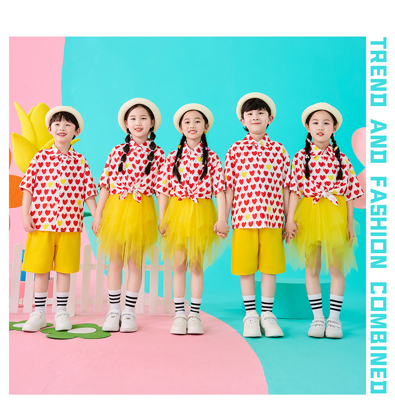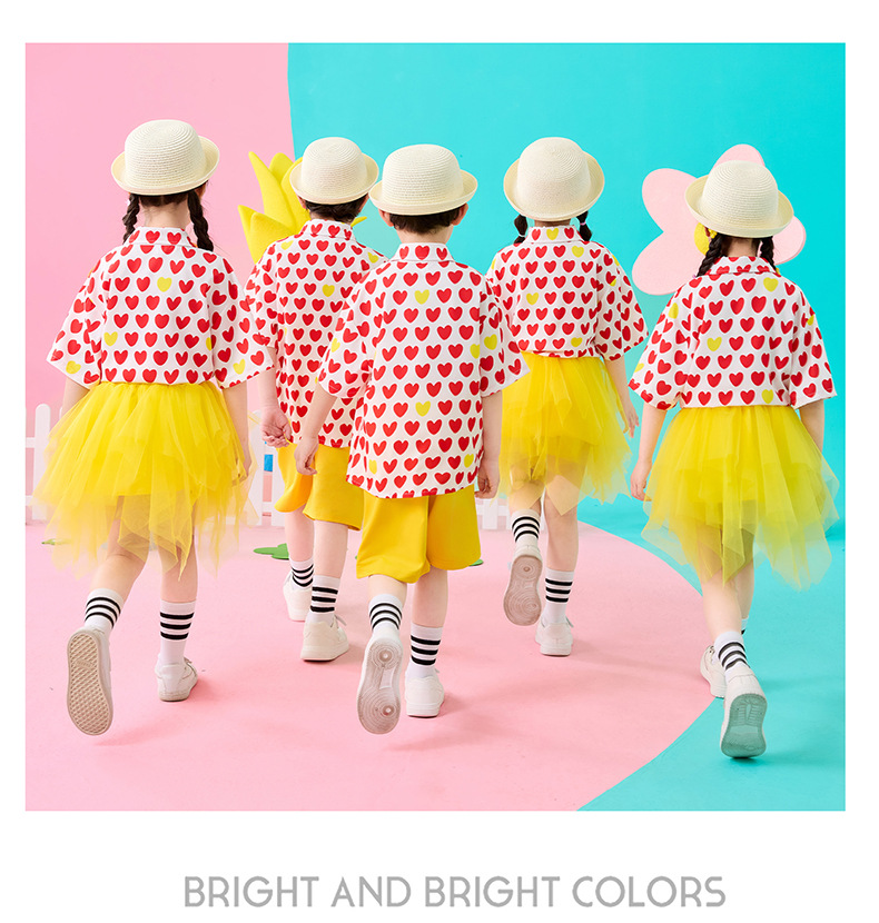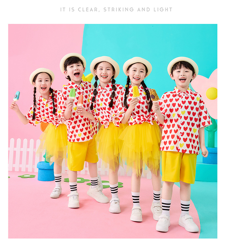 어린이 유치원 댄스 그룹 공연 의상 초등학생 합창 거즈 스커트 정장 어린이 치어 리더 공연 의상 여름