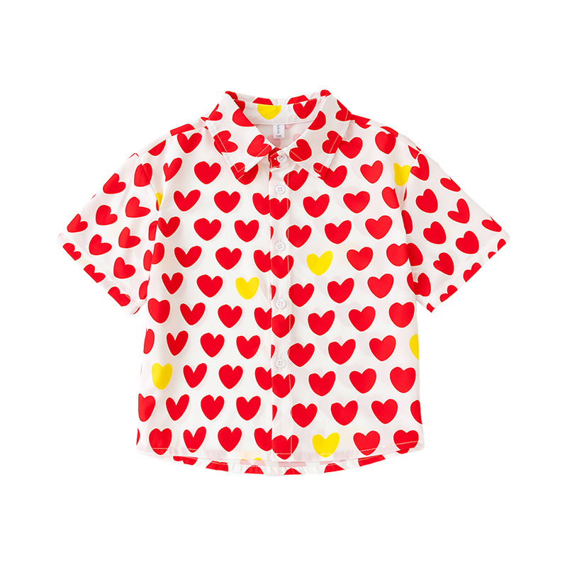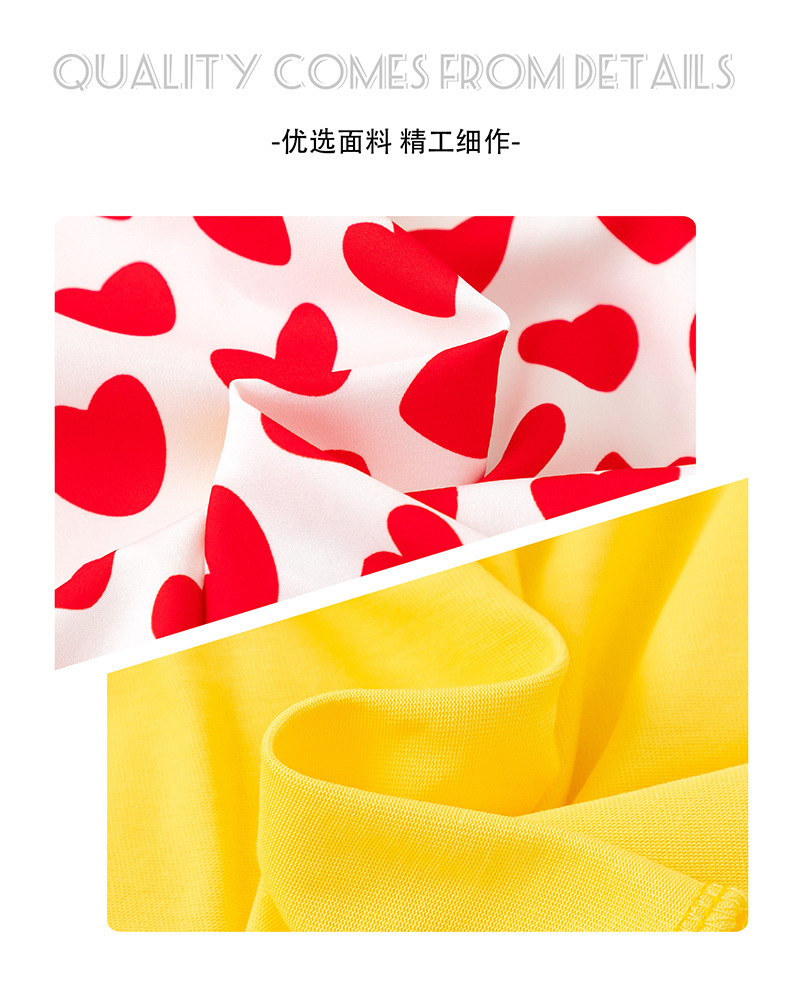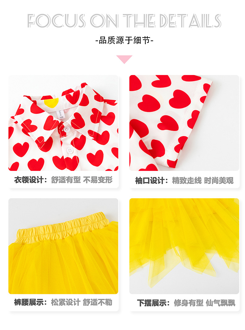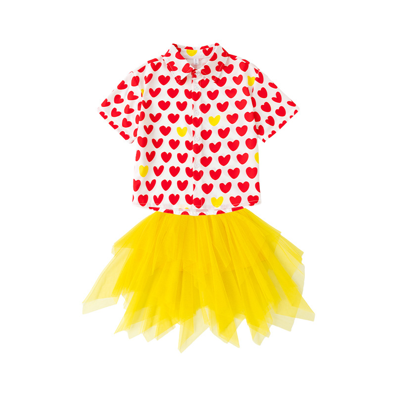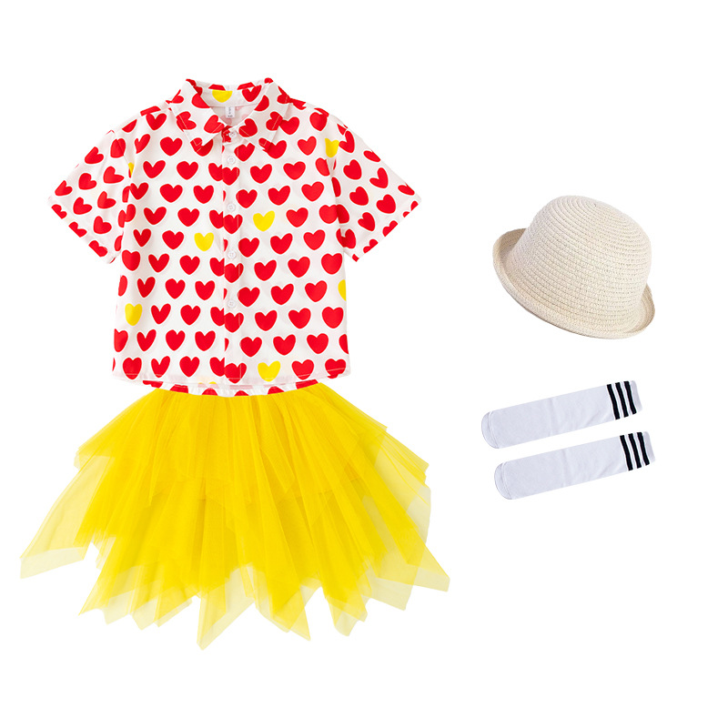 • 레드 하트 반팔 셔츠 + 옐로우 거즈 스커트