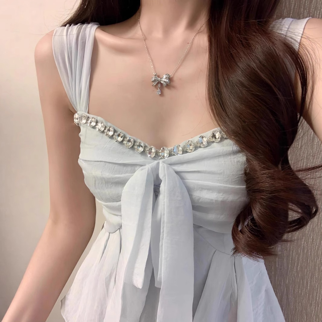 실제 사진, 우아한 쉬폰 셔츠, 다이아몬드가 박힌 섹시한 탑, 여성용 셔츠