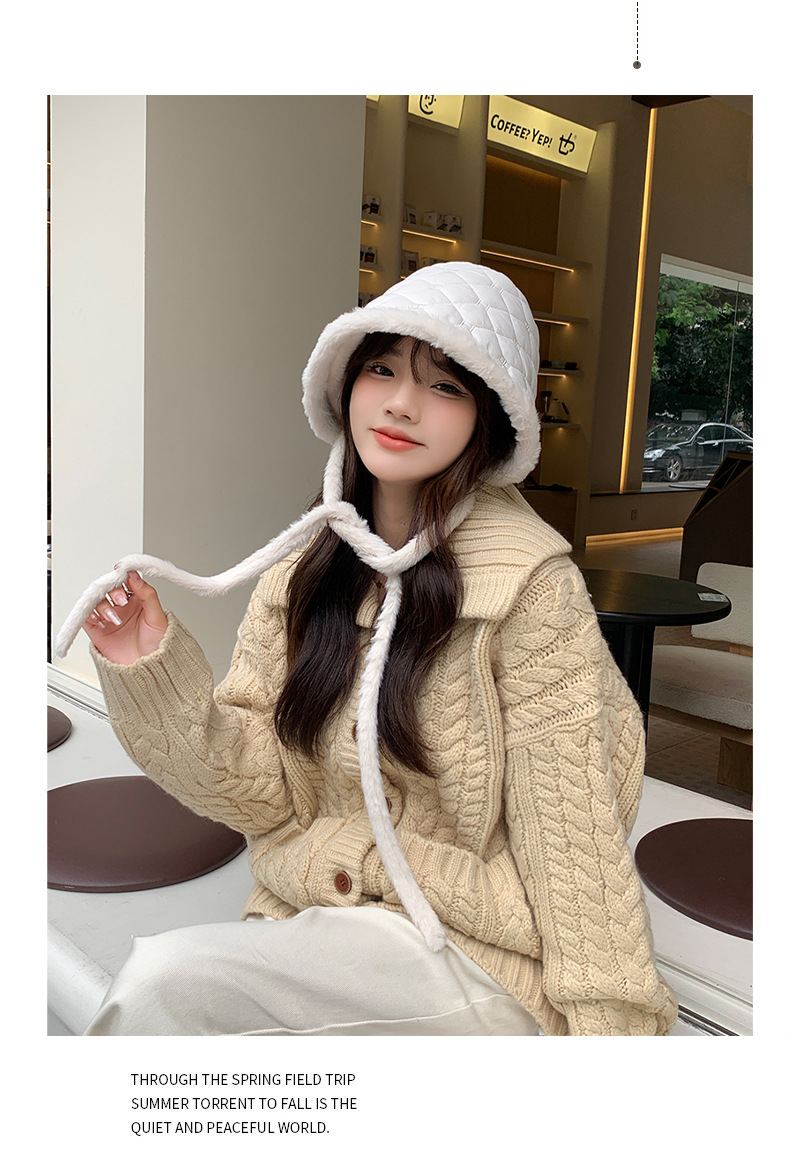 새로운 스타일 작은 귀여운 어부 모자 여성의 가을과 겨울 니트 모자 겨울 기모 따뜻한 냄비 모자 귀 보호 감기스토어 가기