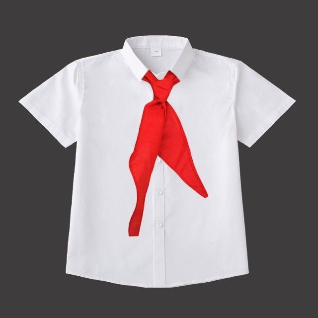 • 흰색 반팔 셔츠 + 빨간색 넥타이