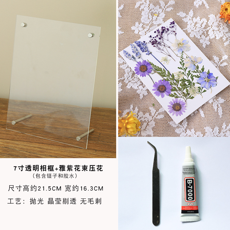 • 사진과 같이 - 7inch 투명 액자 + 우아한 보라색 꽃다발 [무료 핀셋과 접착제]