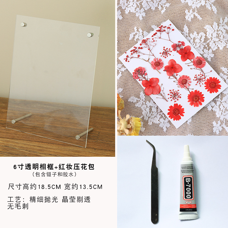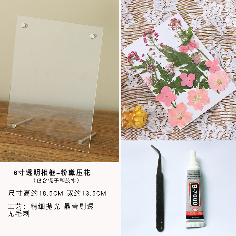 • ★★기간 한정 핫 세일★★사진과 같이 - 투명 액자 6inch개 + 핑크색 드라이플라워 [핀셋과 풀 무료]