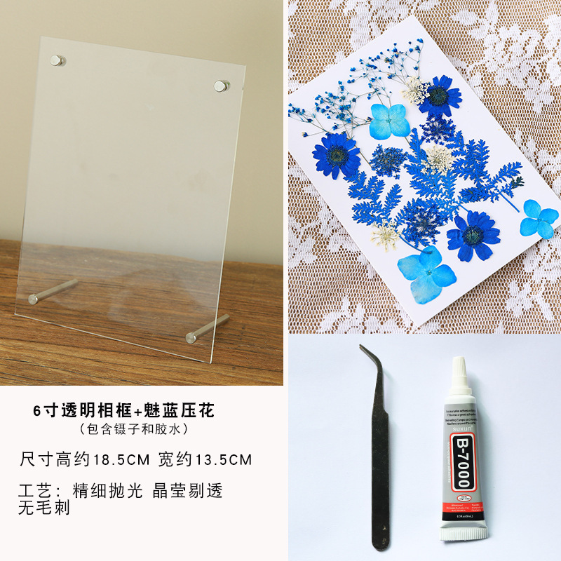 • 사진과 같이 - 6inch 투명 액자 + 매력적인 블루 부케 [무료 핀셋과 접착제]