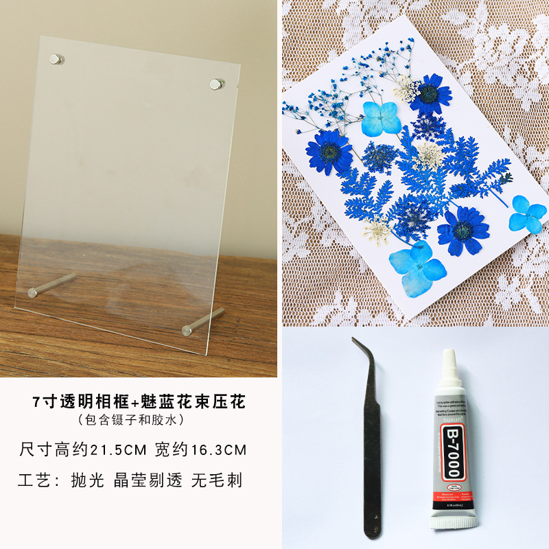 • 사진과 같이 - 7inch 투명 액자 + 매력적인 블루 부케 [무료 핀셋과 접착제]