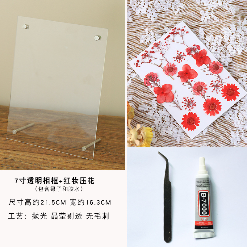 • 사진과 같이 - 7inch 투명 액자 + 레드 메이크업 부케 [무료 핀셋과 글루]