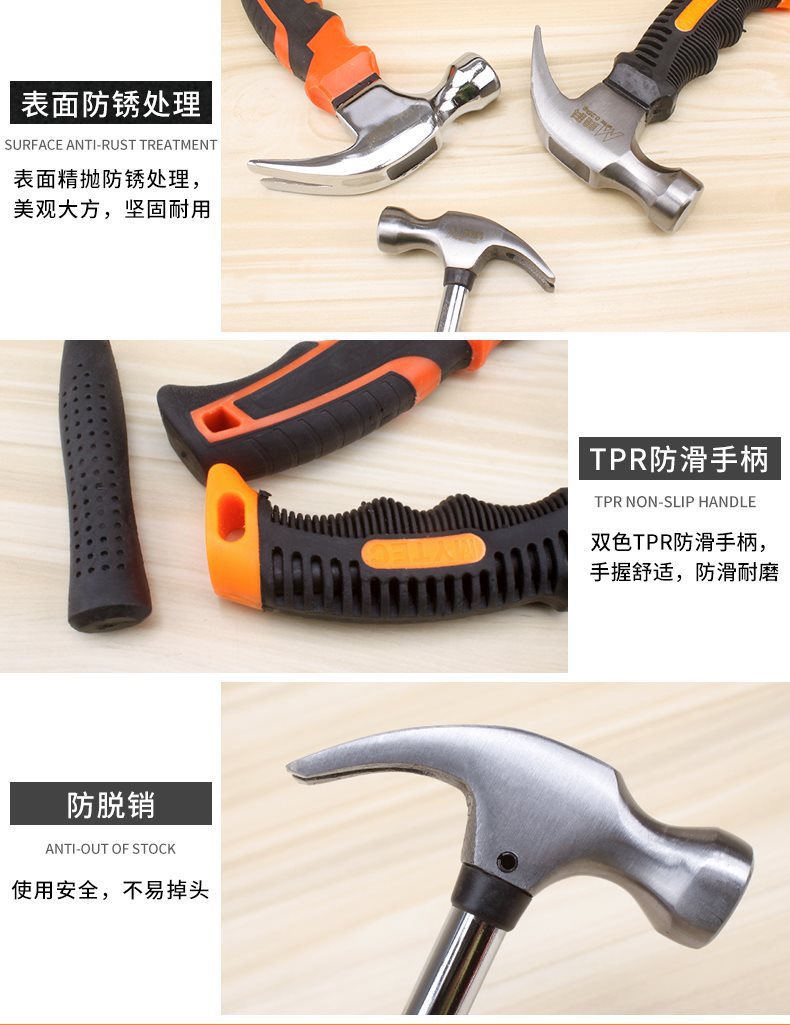 • 0.35kg 나무 손잡이 집게 망치(중)