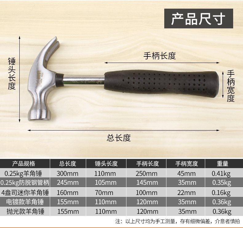 • 0.25kg 나무 손잡이 집게 망치(소)