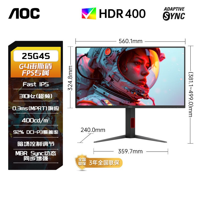 이지스 25G4S 24.5 인치 310HZ 오버 클럭킹 1ms 데스크탑 컴퓨터 전자 경쟁 디스플레이 LCD 화면스토어 가기