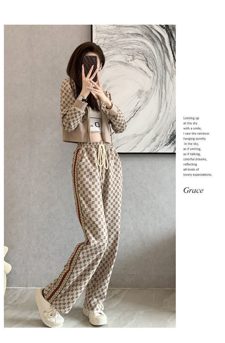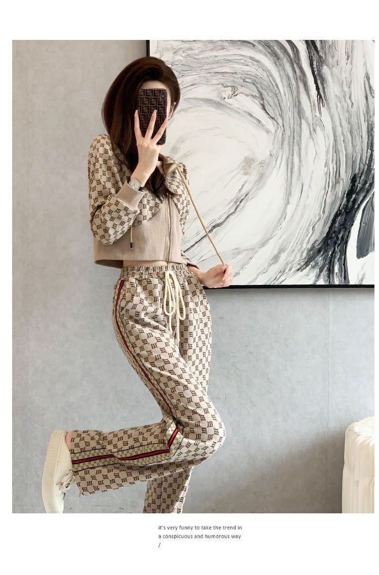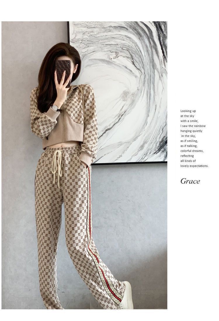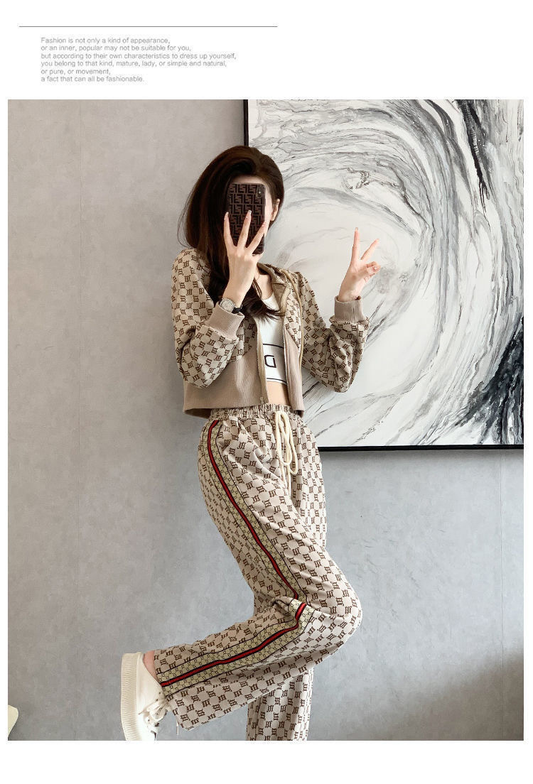 가을 새로운 패션 넓은 다리 슬리밍 스포츠 세트 여성의 짧은 캐주얼 카디건 연령 감소 우아한 투피스 세트스토어 가기